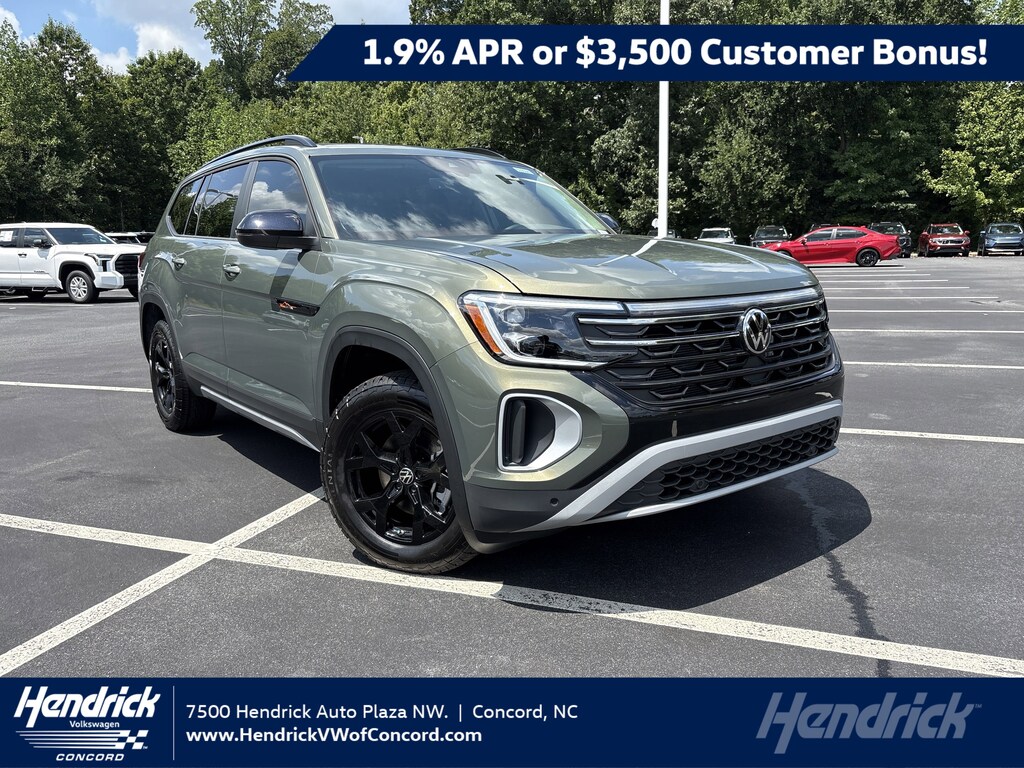 APR for well qualified customers *1.9% APR, no down payment required, available on new, unused 2025 Atlas models financed by Wells Fargo through participating dealers. Example: For 1.9% APR, monthly payment for every $1,000 you finance for 60 months is $17.48. Not all customers will qualify for credit approval or advertised APR. Subject to credit approval by Wells Fargo. Offer ends November 3, 2025. Offer not valid in Puerto Rico. See your participating Volkswagen dealer for details or, for general product information, call 1-800-Drive-VW. ©2025 Volkswagen of America, Inc. **Volkswagen of America, Inc. will apply a $3,500 Customer Bonus when you lease or purchase a new, unused 2025 Atlas through participating dealers from September 3, 2025 to November 3, 2025. Bonus cannot be combined with discounted Volkswagen Financial Services Special Lease or Wells Fargo Special APR Programs, or on Fleet or Dealership Sale Program vehicles. Bonus applied toward lease or purchase and is not redeemable for cash. See your participating Volkswagen dealer for details or, for general product information, call 1-800-Drive-VW. ©2025 Volkswagen of America, Inc.