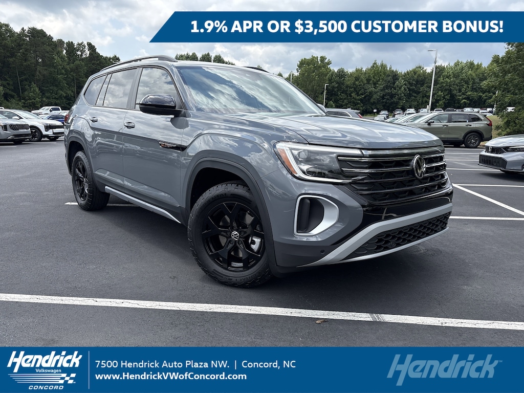 APR for well qualified customers *1.9% APR, no down payment required, available on new, unused 2025 Atlas models financed by Wells Fargo through participating dealers. Example: For 1.9% APR, monthly payment for every $1,000 you finance for 60 months is $17.48. Not all customers will qualify for credit approval or advertised APR. Subject to credit approval by Wells Fargo. Offer ends November 3, 2025. Offer not valid in Puerto Rico. See your participating Volkswagen dealer for details or, for general product information, call 1-800-Drive-VW. ©2025 Volkswagen of America, Inc. **Volkswagen of America, Inc. will apply a $3,500 Customer Bonus when you lease or purchase a new, unused 2025 Atlas through participating dealers from September 3, 2025 to November 3, 2025. Bonus cannot be combined with discounted Volkswagen Financial Services Special Lease or Wells Fargo Special APR Programs, or on Fleet or Dealership Sale Program vehicles. Bonus applied toward lease or purchase and is not redeemable for cash. See your participating Volkswagen dealer for details or, for general product information, call 1-800-Drive-VW. ©2025 Volkswagen of America, Inc.