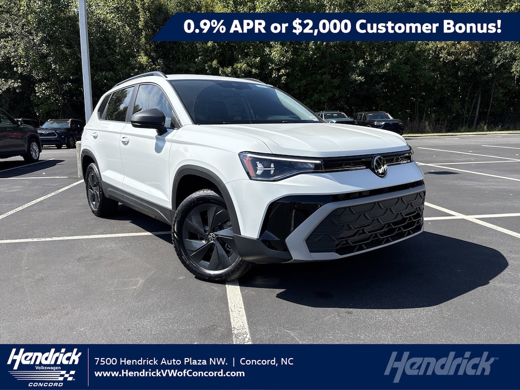 *For current owners and lessees of select Honda vehicles who lease through Volkswagen Financial Services or finance through Wells Fargo. Volkswagen of America, Inc. will apply a $750 Conquest Bonus when qualified customers lease with Volkswagen Financial Services or finance the purchase with Wells Fargo, a new, unused 2025 Taos through participating dealers from October 8, 2025 to January 5, 2026. Must currently own or lease or share a household with individual who owns or leases, an eligible Honda vehicle (proof of ownership, registration, and/or residency may be required). Eligible Honda vehicles include Model Year 2015 Honda models or later. Limit one incentive per eligible Honda VIN. Either one Loyalty Bonus or one Conquest Bonus per customer. No trade-in required. Offers are non-transferable. Conquest Bonus applied toward MSRP in a lease or finance contract and is not redeemable for cash. Conquest Bonus cannot be combined on any other Loyalty-related, Fleet or Dealership Sales Programs. Corporations, companies, businesses, dealers, fleet leasing, fleet management or dealer-affiliated fleet companies that own or lease an eligible competitive vehicle are not eligible. Other restrictions may apply. See your participating Volkswagen dealer for details. For general product information, call 1-800-Drive-VW. ©2025 Volkswagen of America, Inc. **0.9% APR, no down payment required, available on new, unused 2025 Taos models financed by Wells Fargo through participating dealers. Example: For 0.9% APR, monthly payment for every $1,000 you finance for 60 months is $17.05. Not all customers will qualify for credit approval or advertised APR. Subject to credit approval by Wells Fargo. Offer ends November 3, 2025. Offer not valid in Puerto Rico. See your participating Volkswagen dealer for details or, for general product information, call 1-800-Drive-VW. ©️2025 Volkswagen of America, Inc. **Volkswagen of America, Inc. will apply a $2,000 Customer Bonus when you lease or purchase a new, unused 2025 Taos (excludes S trims) through participating dealers from October 8, 2025 to November 3, 2025. Bonus cannot be combined with discounted Volkswagen Financial Services Special Lease or Wells Fargo Special APR Programs, or on Fleet or Dealership Sale Program vehicles. Bonus applied toward lease or purchase and is not redeemable for cash. See your participating Volkswagen dealer for details or, for general product information, call 1-800-Drive-VW. ©️2025 Volkswagen of America, Inc.