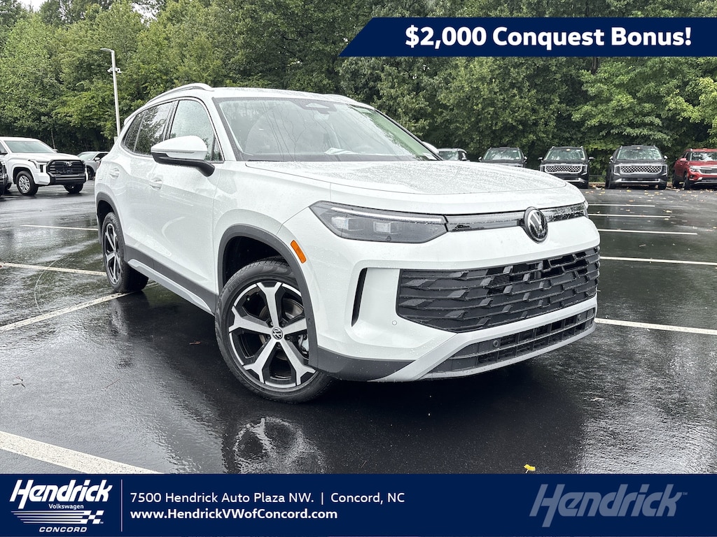 For current owners and lessees of select Honda vehicles who lease through Volkswagen Financial Services or finance through Wells Fargo. Dealer's contribution toward Volkswagen of America bonus may affect the final negotiated price of the vehicle. Volkswagen of America, Inc. will apply a $2,000 Conquest Bonus when qualified customers lease with Volkswagen Financial Services or finance the purchase with Wells Fargo, a new, unused 2025 Tiguan through participating dealers from October 1, 2025 to January 5, 2026. Must currently own or lease or share a household with individual who owns or leases, an eligible Honda vehicle (proof of ownership, registration, and/or residency may be required). Eligible Honda vehicles include Model Year 2015 Honda models or later. Limit one incentive per eligible Honda VIN. Either one Loyalty Bonus or one Conquest Bonus per customer. No trade-in required. Offers are non-transferable. Bonus applied toward MSRP in a lease or finance contract and is not redeemable for cash. Bonus cannot be combined on any Loyalty-related, Fleet or Dealership Sales Programs. Corporations, companies, businesses, and dealers, fleet leasing, fleet management or dealer-affiliated fleet companies that own or lease an eligible competitive vehicle are not eligible. Other restrictions may apply. See your participating Volkswagen dealer for details or, for general product information, call 1-800-Drive-VW. ©2025 Volkswagen of America, Inc.