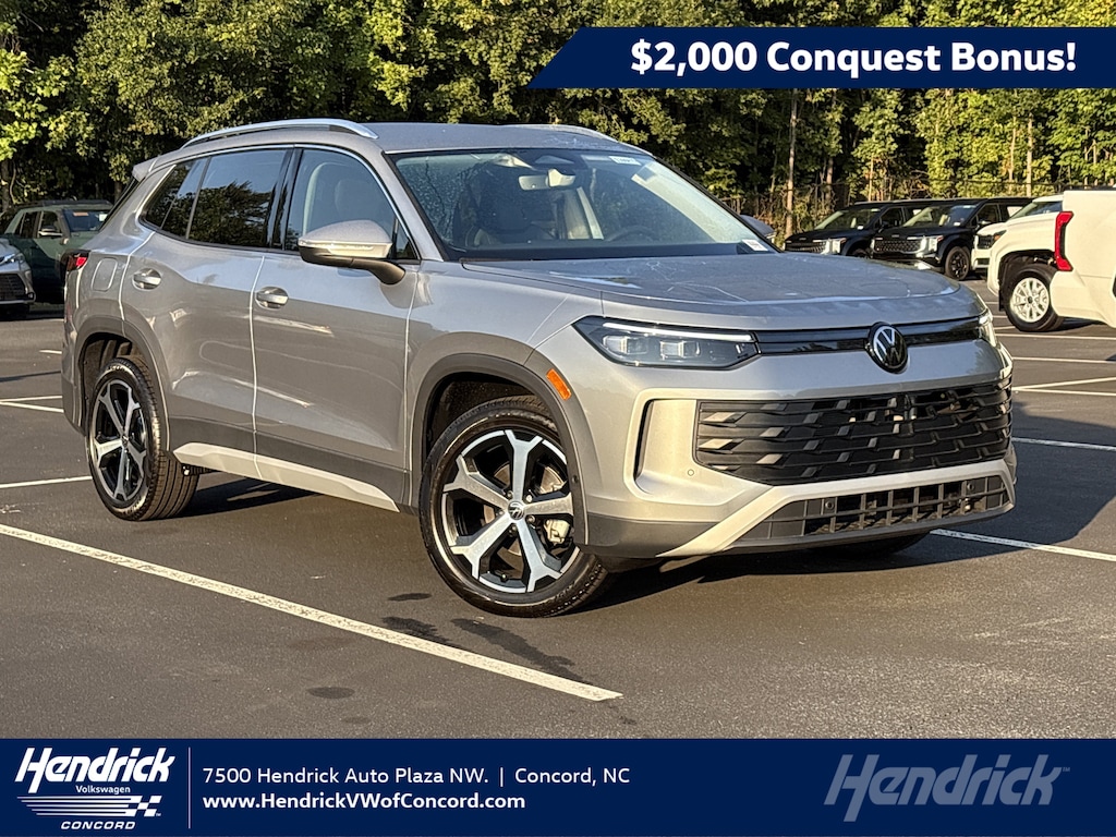 For current owners and lessees of select Honda vehicles who lease through Volkswagen Financial Services or finance through Wells Fargo. Dealer's contribution toward Volkswagen of America bonus may affect the final negotiated price of the vehicle. Volkswagen of America, Inc. will apply a $2,000 Conquest Bonus when qualified customers lease with Volkswagen Financial Services or finance the purchase with Wells Fargo, a new, unused 2025 Tiguan through participating dealers from October 1, 2025 to January 5, 2026. Must currently own or lease or share a household with individual who owns or leases, an eligible Honda vehicle (proof of ownership, registration, and/or residency may be required). Eligible Honda vehicles include Model Year 2015 Honda models or later. Limit one incentive per eligible Honda VIN. Either one Loyalty Bonus or one Conquest Bonus per customer. No trade-in required. Offers are non-transferable. Bonus applied toward MSRP in a lease or finance contract and is not redeemable for cash. Bonus cannot be combined on any Loyalty-related, Fleet or Dealership Sales Programs. Corporations, companies, businesses, and dealers, fleet leasing, fleet management or dealer-affiliated fleet companies that own or lease an eligible competitive vehicle are not eligible. Other restrictions may apply. See your participating Volkswagen dealer for details or, for general product information, call 1-800-Drive-VW. ©2025 Volkswagen of America, Inc.