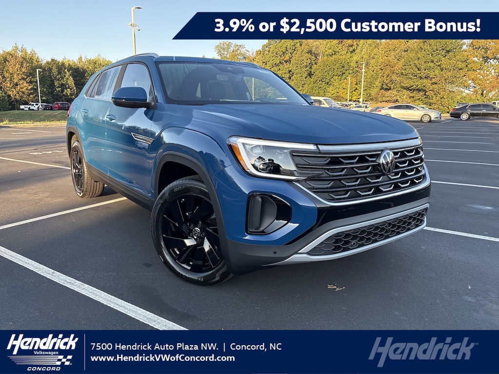 *3.9% APR, no down payment required, available on new, unused 2026 Atlas Cross Sport models financed by Wells Fargo through participating dealers. Example: For 3.9% APR, monthly payment for every $1,000 you finance for 72 months is $15.60. Not all customers will qualify for credit approval or advertised APR. Subject to credit approval by Wells Fargo. Offer ends March 2, 2026. Offer not valid in Puerto Rico. See your participating Volkswagen dealer for details or, for general product information, call 1-800-Drive-VW. ©2026 Volkswagen of America, Inc. **Volkswagen of America, Inc. will apply a $2,500 Customer Bonus when you lease or purchase a new, unused 2026 Atlas Cross Sport through participating dealers from January 6, 2026 to February 2, 2026. Bonus cannot be combined with discounted Volkswagen Financial Services Special Lease or Wells Fargo Special APR Programs, or on Fleet or Dealership Sale Program vehicles. Bonus applied toward lease or purchase and is not redeemable for cash. See your participating Volkswagen dealer for details or, for general product information, call 1-800-Drive-VW. ©2026 Volkswagen of America, Inc. APR offer for well-qualified customers.