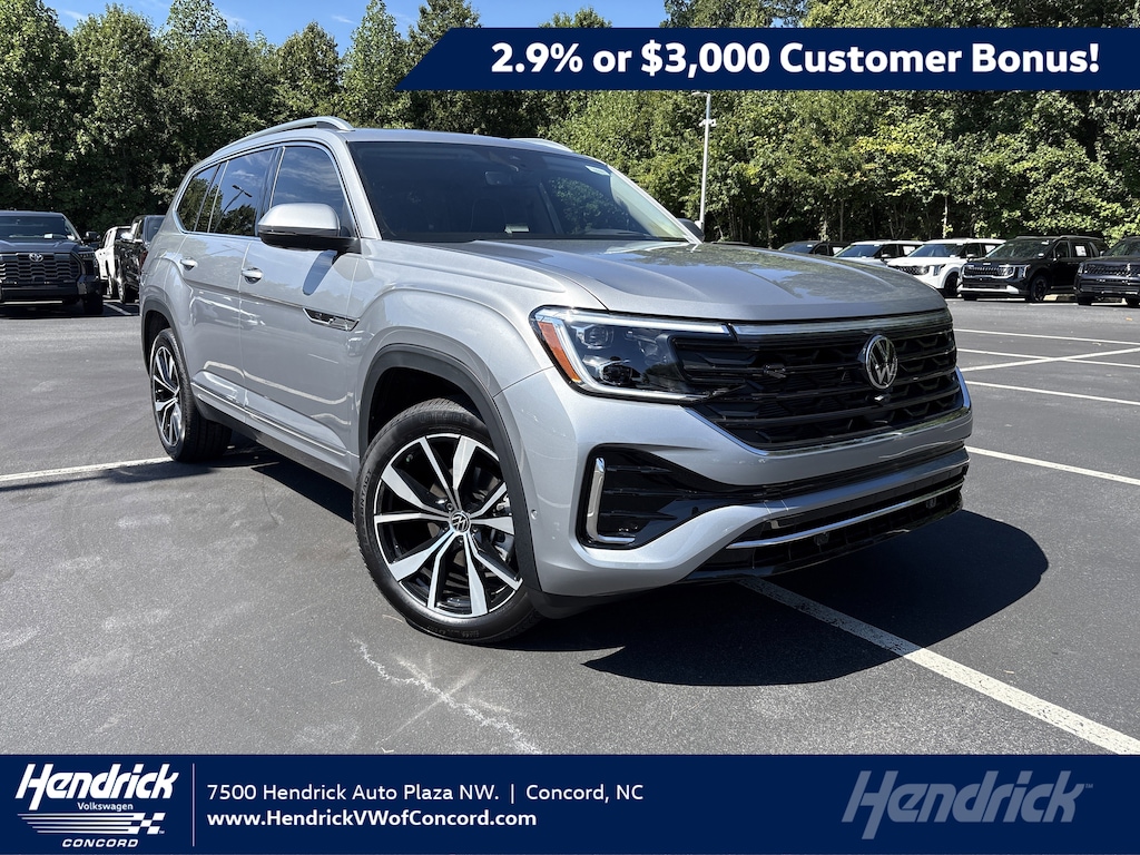 Excludes tax, title, license, options, and dealer fees. Example lease: $599/month for 36 months for well-qualified customers on approved credit through Volkswagen Financial Services and participating dealers for a new, unused 2026 Atlas SE Tech FWD. Based on MSRP of $43,730 (including destination charge) with a capitalized cost of $44,838.54; total monthly payments $20,965. Lessee responsible at lease end for $395 disposition fee, $0.20 per mile over 30,000 miles, and excess wear and use. A $395 fee applies if you purchase your lease vehicle. 0.9% APR for 60 months, no down payment required, available on new, unused 2025 Atlas models financed through Wells Fargo and participating dealers; example: $17.05 per $1,000 financed. Subject to credit approval; not all customers will qualify. Volkswagen of America, Inc. will apply a $3,500 Customer Bonus toward the lease or purchase of a new, unused 2025 Atlas from November 1, 2025, to January 5, 2026. Bonus cannot be combined with Volkswagen Financial Services Special Lease, Wells Fargo Special APR, Fleet, or Dealership Sale Program vehicles and is not redeemable for cash. Offers end January 5, 2026. Offers not valid in Puerto Rico. See participating Volkswagen dealer for details or call 1-800-DRIVE-VW. ©2025 Volkswagen of America, Inc.