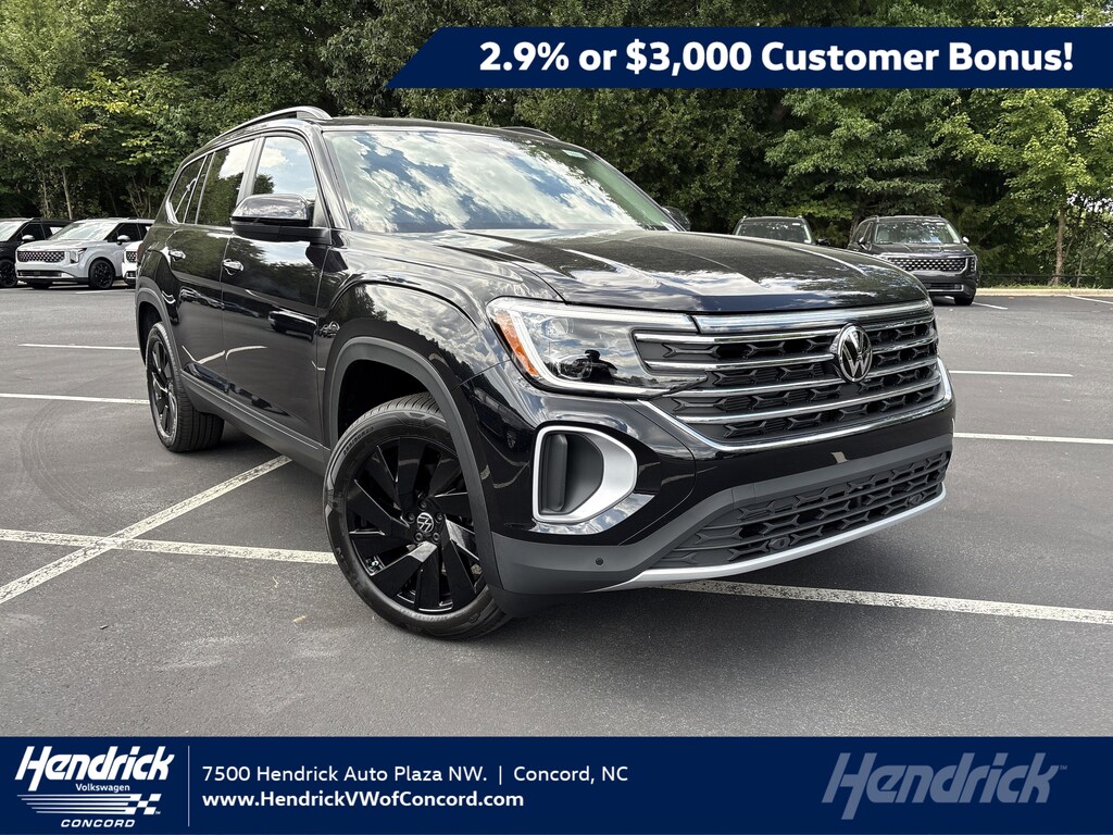 Excludes tax, title, license, options, and dealer fees. Example lease: $599/month for 36 months for well-qualified customers on approved credit through Volkswagen Financial Services and participating dealers for a new, unused 2026 Atlas SE Tech FWD. Based on MSRP of $43,730 (including destination charge) with a capitalized cost of $44,838.54; total monthly payments $20,965. Lessee responsible at lease end for $395 disposition fee, $0.20 per mile over 30,000 miles, and excess wear and use. A $395 fee applies if you purchase your lease vehicle. 0.9% APR for 60 months, no down payment required, available on new, unused 2025 Atlas models financed through Wells Fargo and participating dealers; example: $17.05 per $1,000 financed. Subject to credit approval; not all customers will qualify. Volkswagen of America, Inc. will apply a $3,500 Customer Bonus toward the lease or purchase of a new, unused 2025 Atlas from November 1, 2025, to January 5, 2026. Bonus cannot be combined with Volkswagen Financial Services Special Lease, Wells Fargo Special APR, Fleet, or Dealership Sale Program vehicles and is not redeemable for cash. Offers end January 5, 2026. Offers not valid in Puerto Rico. See participating Volkswagen dealer for details or call 1-800-DRIVE-VW. ©2025 Volkswagen of America, Inc.