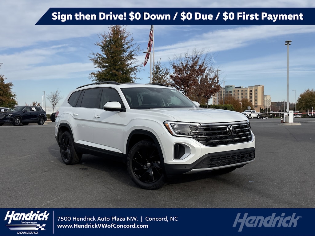 Excludes tax, title, license, options, and dealer fees. Example lease: $599/month for 36 months for well-qualified customers on approved credit through Volkswagen Financial Services and participating dealers for a new, unused 2026 Atlas SE Tech FWD. Based on MSRP of $43,730 (including destination charge) with a capitalized cost of $44,838.54; total monthly payments $20,965. Lessee responsible at lease end for $395 disposition fee, $0.20 per mile over 30,000 miles, and excess wear and use. A $395 fee applies if you purchase your lease vehicle. 0.9% APR for 60 months, no down payment required, available on new, unused 2025 Atlas models financed through Wells Fargo and participating dealers; example: $17.05 per $1,000 financed. Subject to credit approval; not all customers will qualify. Volkswagen of America, Inc. will apply a $3,500 Customer Bonus toward the lease or purchase of a new, unused 2025 Atlas from November 1, 2025, to January 5, 2026. Bonus cannot be combined with Volkswagen Financial Services Special Lease, Wells Fargo Special APR, Fleet, or Dealership Sale Program vehicles and is not redeemable for cash. Offers end January 5, 2026. Offers not valid in Puerto Rico. See participating Volkswagen dealer for details or call 1-800-DRIVE-VW. ©2025 Volkswagen of America, Inc.