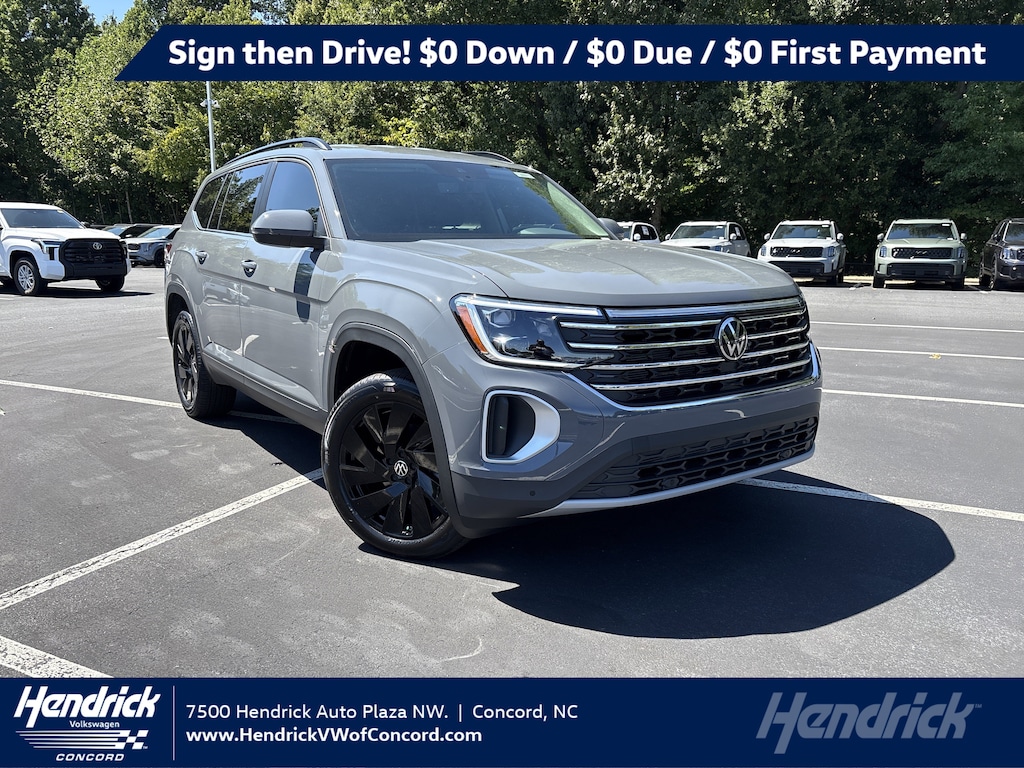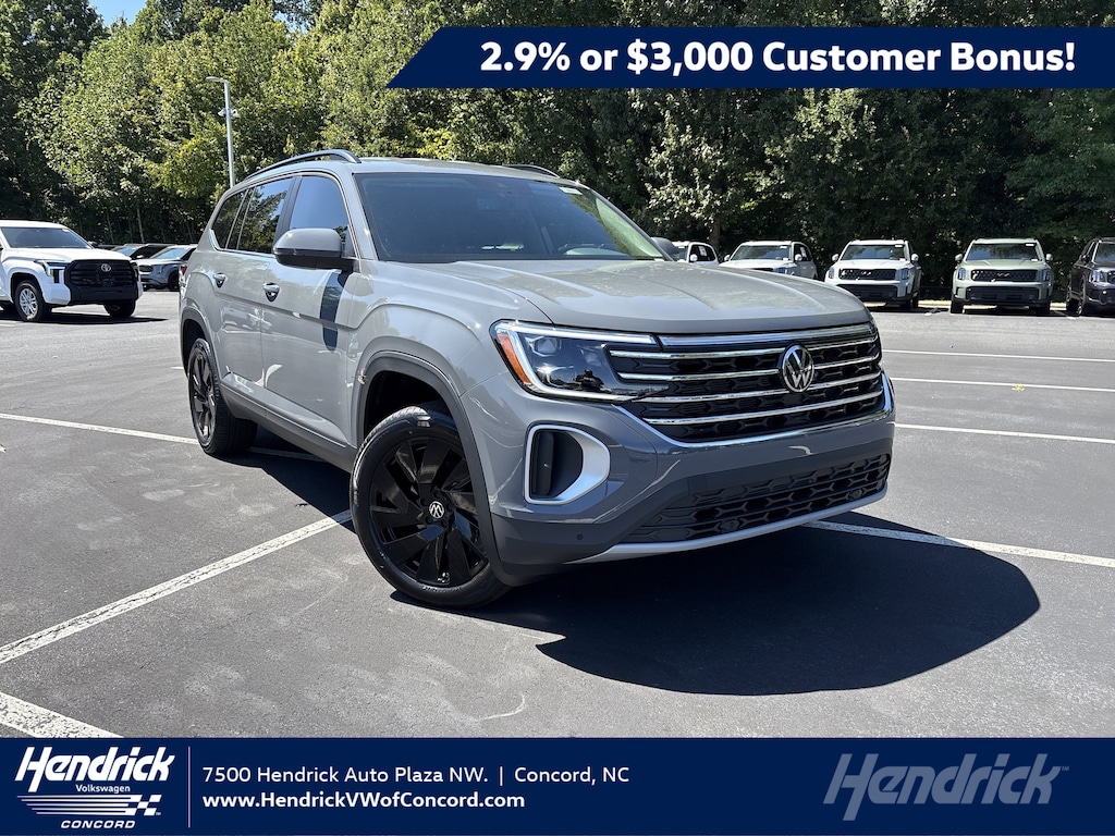 Excludes tax, title, license, options, and dealer fees. Example lease: $599/month for 36 months for well-qualified customers on approved credit through Volkswagen Financial Services and participating dealers for a new, unused 2026 Atlas SE Tech FWD. Based on MSRP of $43,730 (including destination charge) with a capitalized cost of $44,838.54; total monthly payments $20,965. Lessee responsible at lease end for $395 disposition fee, $0.20 per mile over 30,000 miles, and excess wear and use. A $395 fee applies if you purchase your lease vehicle. 0.9% APR for 60 months, no down payment required, available on new, unused 2025 Atlas models financed through Wells Fargo and participating dealers; example: $17.05 per $1,000 financed. Subject to credit approval; not all customers will qualify. Volkswagen of America, Inc. will apply a $3,500 Customer Bonus toward the lease or purchase of a new, unused 2025 Atlas from November 1, 2025, to January 5, 2026. Bonus cannot be combined with Volkswagen Financial Services Special Lease, Wells Fargo Special APR, Fleet, or Dealership Sale Program vehicles and is not redeemable for cash. Offers end January 5, 2026. Offers not valid in Puerto Rico. See participating Volkswagen dealer for details or call 1-800-DRIVE-VW. ©2025 Volkswagen of America, Inc.