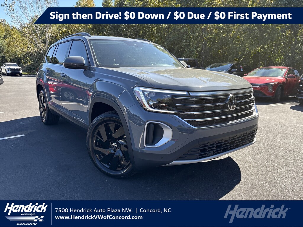 Excludes tax, title, license, options, and dealer fees. Example lease: $599/month for 36 months for well-qualified customers on approved credit through Volkswagen Financial Services and participating dealers for a new, unused 2026 Atlas SE Tech FWD. Based on MSRP of $43,730 (including destination charge) with a capitalized cost of $44,838.54; total monthly payments $20,965. Lessee responsible at lease end for $395 disposition fee, $0.20 per mile over 30,000 miles, and excess wear and use. A $395 fee applies if you purchase your lease vehicle. 0.9% APR for 60 months, no down payment required, available on new, unused 2025 Atlas models financed through Wells Fargo and participating dealers; example: $17.05 per $1,000 financed. Subject to credit approval; not all customers will qualify. Volkswagen of America, Inc. will apply a $3,500 Customer Bonus toward the lease or purchase of a new, unused 2025 Atlas from November 1, 2025, to January 5, 2026. Bonus cannot be combined with Volkswagen Financial Services Special Lease, Wells Fargo Special APR, Fleet, or Dealership Sale Program vehicles and is not redeemable for cash. Offers end January 5, 2026. Offers not valid in Puerto Rico. See participating Volkswagen dealer for details or call 1-800-DRIVE-VW. ©2025 Volkswagen of America, Inc.