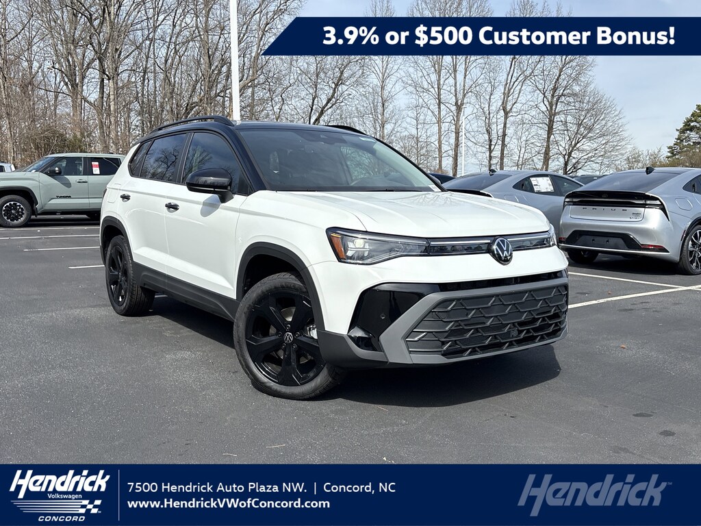 *3.9% APR, no down payment required, available on new, unused 2026 Taos models financed by Wells Fargo through participating dealers. Example: For 3.9% APR, monthly payment for every $1,000 you finance for 60 months is $18.37. Not all customers will qualify for credit approval or advertised APR. Subject to credit approval by Wells Fargo. Offer ends February 2, 2026. Offer not valid in Puerto Rico. See your participating Volkswagen dealer for details or, for general product information, call 1-800-Drive-VW. ©2026 Volkswagen of America, Inc. **Volkswagen of America, Inc. will apply a $500 Customer Bonus when you lease or purchase a new, unused 2026 Atlas Cross Sport through participating dealers from January 6, 2026 to March 2, 2026. Bonus cannot be combined with discounted Volkswagen Financial Services Special Lease or Wells Fargo Special APR Programs, or on Fleet or Dealership Sale Program vehicles. Bonus applied toward lease or purchase and is not redeemable for cash. See your participating Volkswagen dealer for details or, for general product information, call 1-800-Drive-VW. ©2026 Volkswagen of America, Inc. APR offer for well-qualified customers.