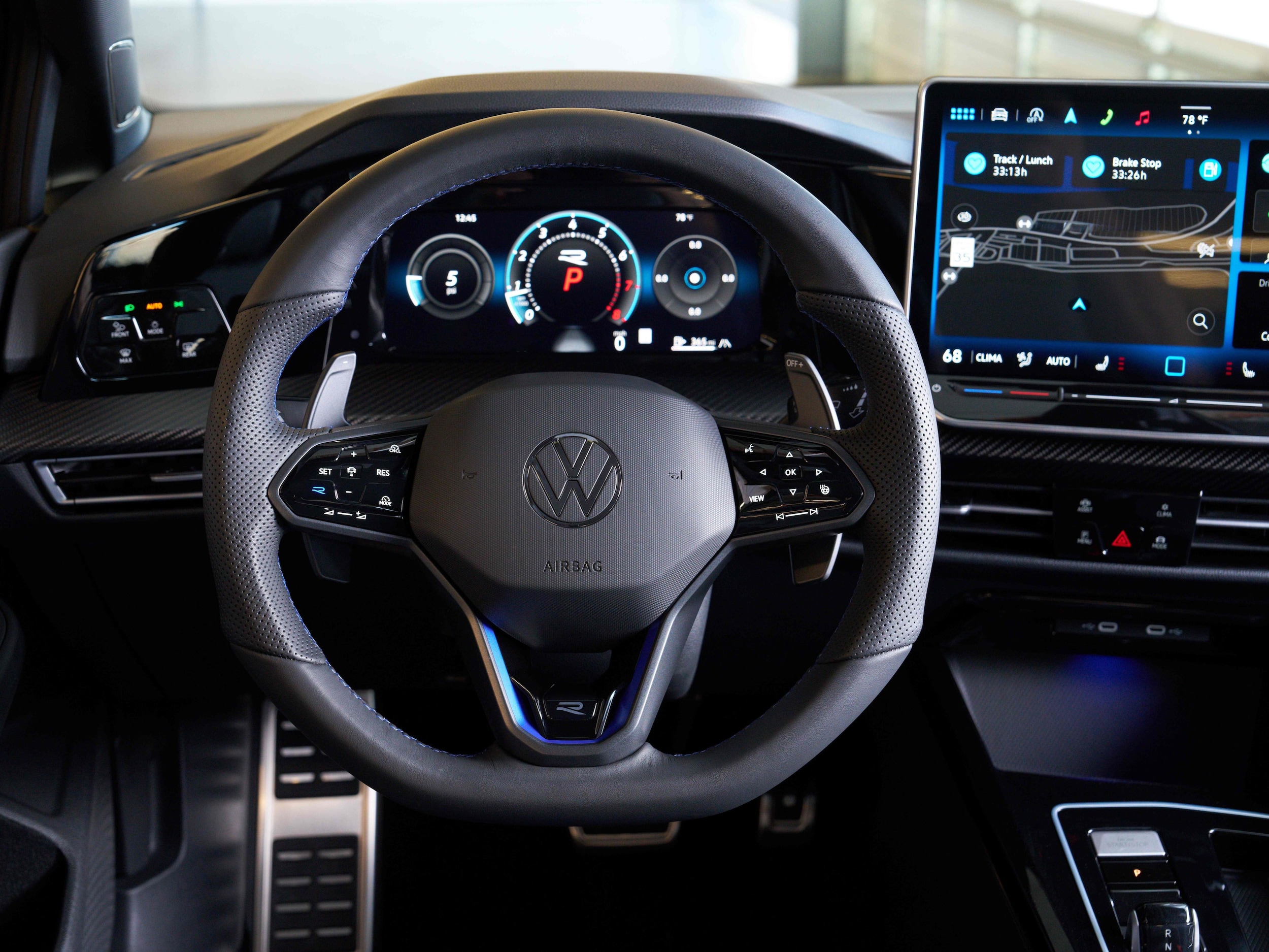 You'll find a 12.9-inch display equipped in your 2026 VW Golf R. This screen offers wireless smartphone integration and voice control. The instrument cluster is customizable, allowing you to add your preferred details and stay informed while driving. The premium sound system includes 12 speakers, giving you an incredible listening experience for your favorite songs, audiobooks, and other media. A head-up display can include racing details, including GPS lap timers, time comparisons, and three g-meter modes.